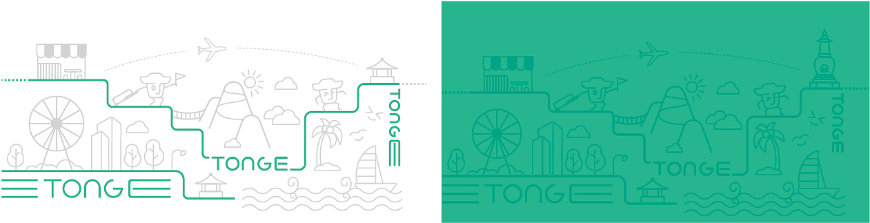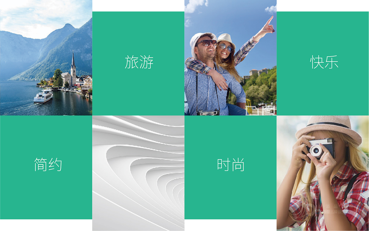 標(biāo)準(zhǔn)色選用了年輕活躍的青綠色,給人輕松明亮的視覺感覺,體現(xiàn)了旅游帶來的愉快體驗(yàn),讓人拋開了生活中那些厚重的煩惱。