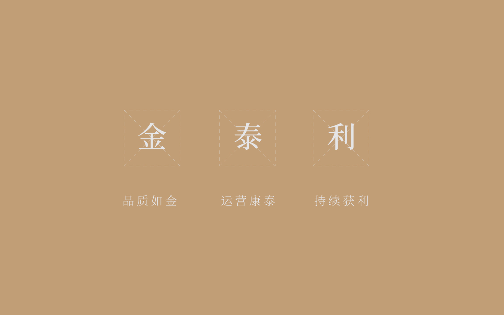 我們以品牌首字‘金’為核心設計元素;兩個‘金’字垂直對稱,相互依托;