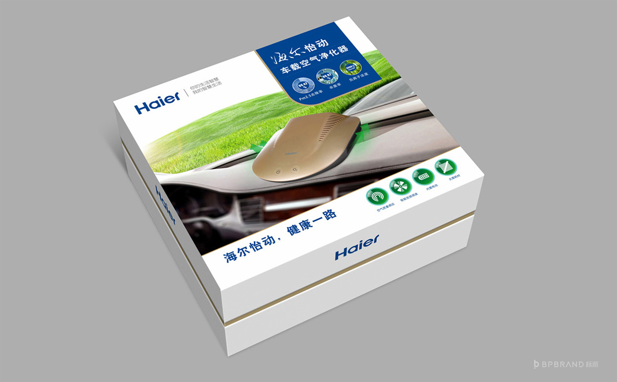 為海爾品牌下的一款空氣凈化器進行的包裝策劃和設計,采用禮合包裝的形式,天地蓋包裝結構。